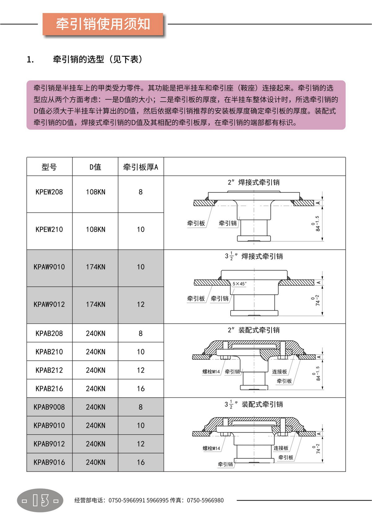 鞍座 · 牽引銷【產(chǎn)品使用說明書】
